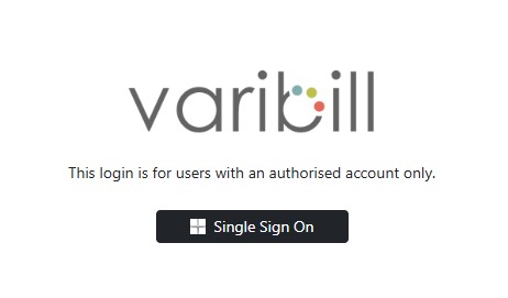 - Access the following link through your browser: https://ui.varibill.com/, or copy and paste the URL directly into the address bar. You should automatically be directed to the Login page, offering access through Single Sign On (SSO).
